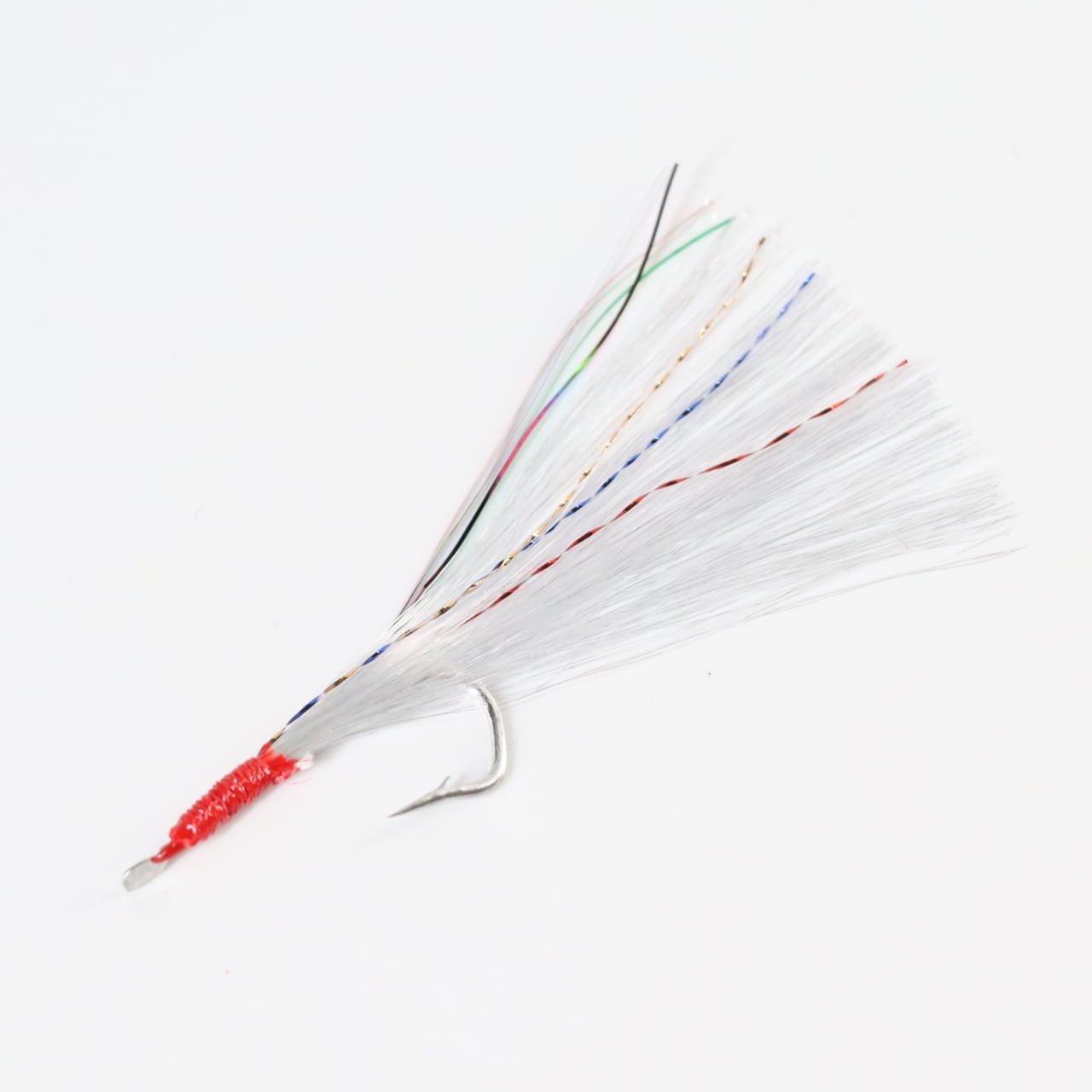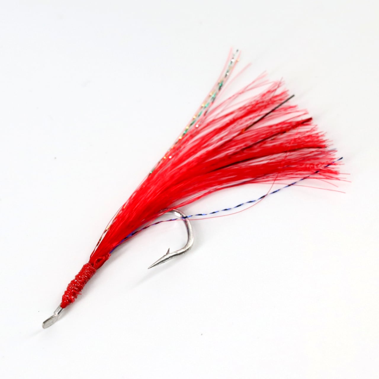 海中にいるオキアミや小魚に似せた毛針で、胴付き仕掛けで使用される方が多い商品です。