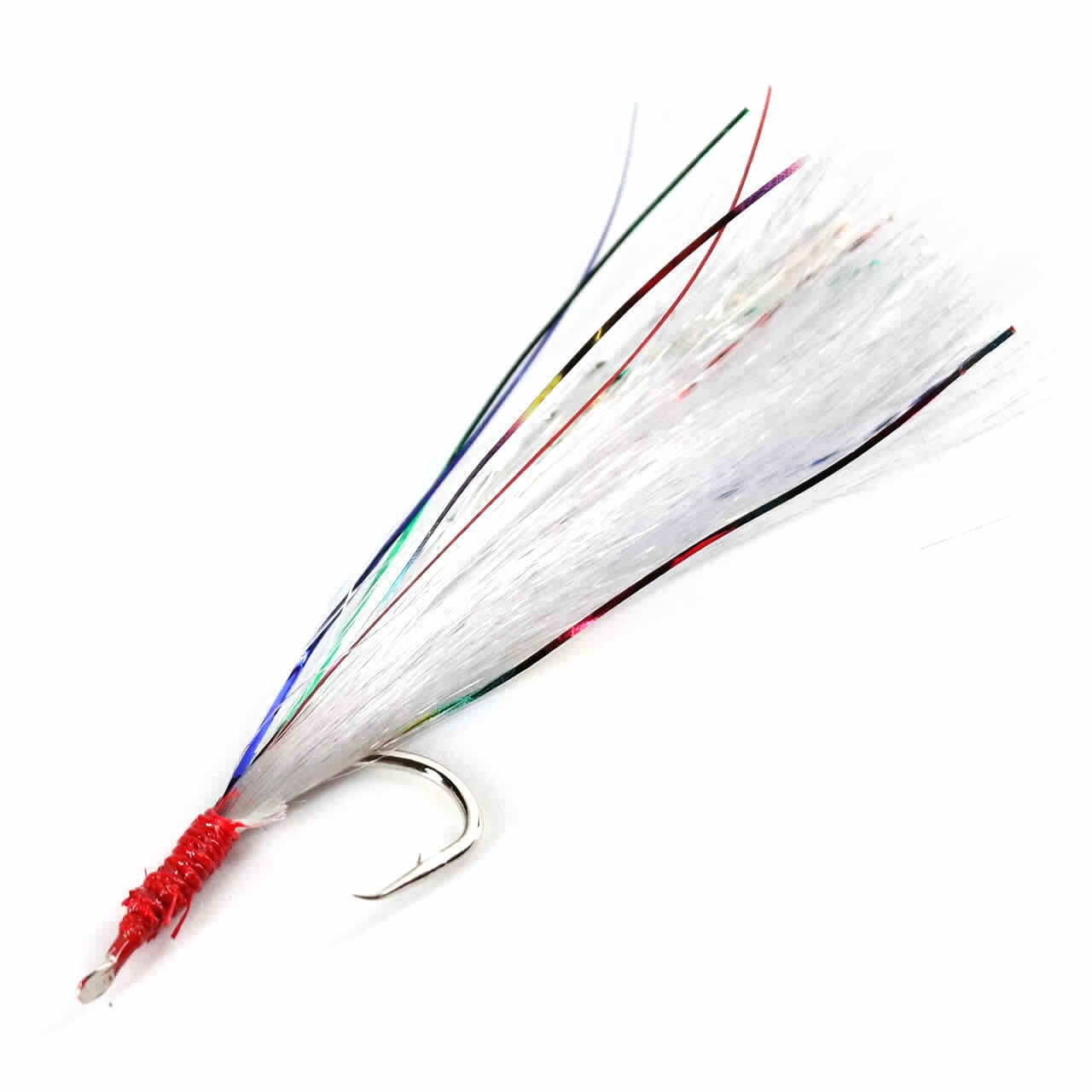 海中にいるオキアミや小魚に似せた毛針で、胴付き仕掛けで使用される方が多い商品です。