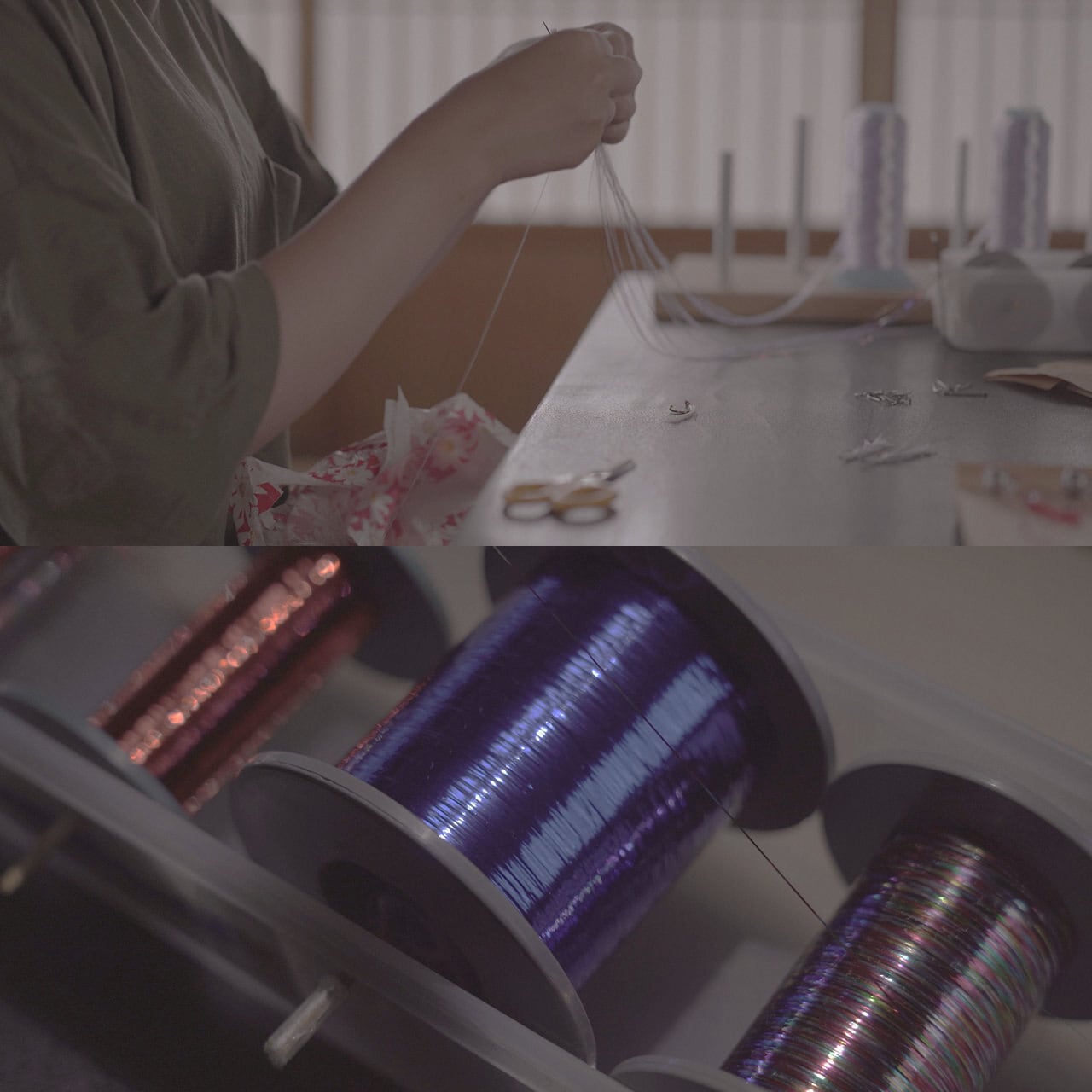 ⽑針づくりは⽗から娘へ